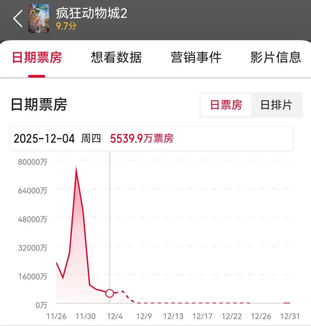 单日票房从7.38亿的巅峰一路暴跌到0.557亿冠达配资,《疯狂动物城2》的票房神话显然已经成为泡沫,想超越《哪吒2》岂不是天方夜谭。