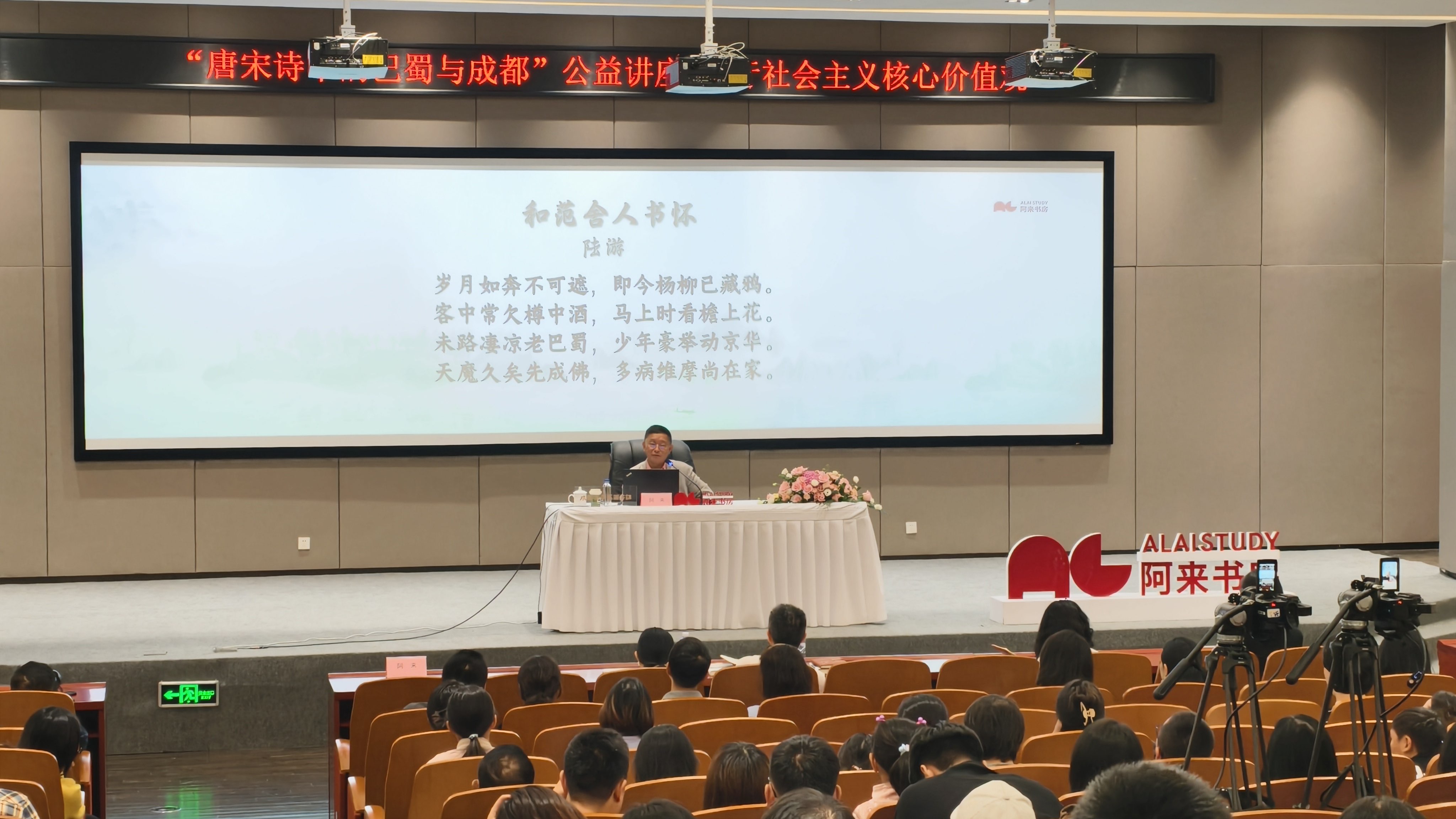 10月18日,阿来系列讲座“唐宋诗中的巴蜀与成都”之“陆游蜀中诗讲”第十六讲在成都高新区图书馆举行。本次讲座延续上一讲陆游和范成大在蜀中的交往,以“迟日春风护海棠”为题,围绕两位吴地诗人的视角,让观众了解了南宋时期成都的节庆烟火、古迹文脉与诗心交游。